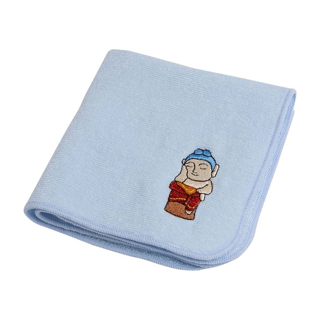 今治産のタオルハンカチに、地蔵菩薩を刺しゅうしました。 お守りがわりに持ち歩いていただけます。 サイズ: 22cm×22cm 素材: 綿100%