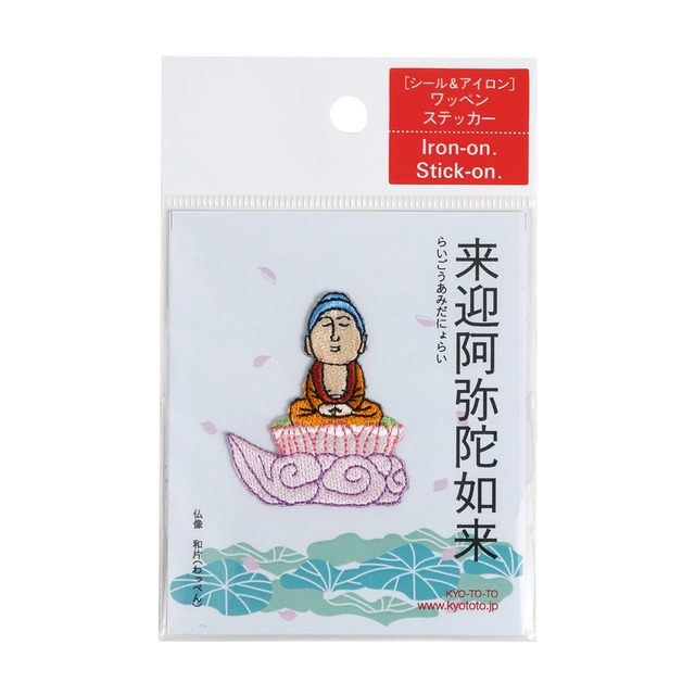 三浦耀山が彫った仏像がワッペンになりました。 仏教では臨終の際に阿弥陀如来が雲に乗って極楽浄土から迎えに来てくれることを来迎といい深く信仰され、平安時代や鎌倉時代には仏像や仏画で数多く表現されてきた。 サイズ: 4cm×4.5cm 素材: レーヨン100%