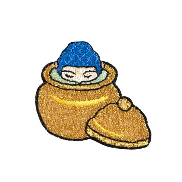三浦耀山が彫った仏像がワッペンになりました。 薬師如来は、病気を癒す仏として信仰され、薬壺(やくこ)を持つ。この薬壺には薬が入っており、人々の身体的・精神的な苦痛を取り除き、安らぎを与える。 このワッペンでは通常とは逆にお薬師さんが薬壺の薬湯に浸かっている姿にしてみました。 サイズ: 4cm×4cm 素材: レーヨン100%