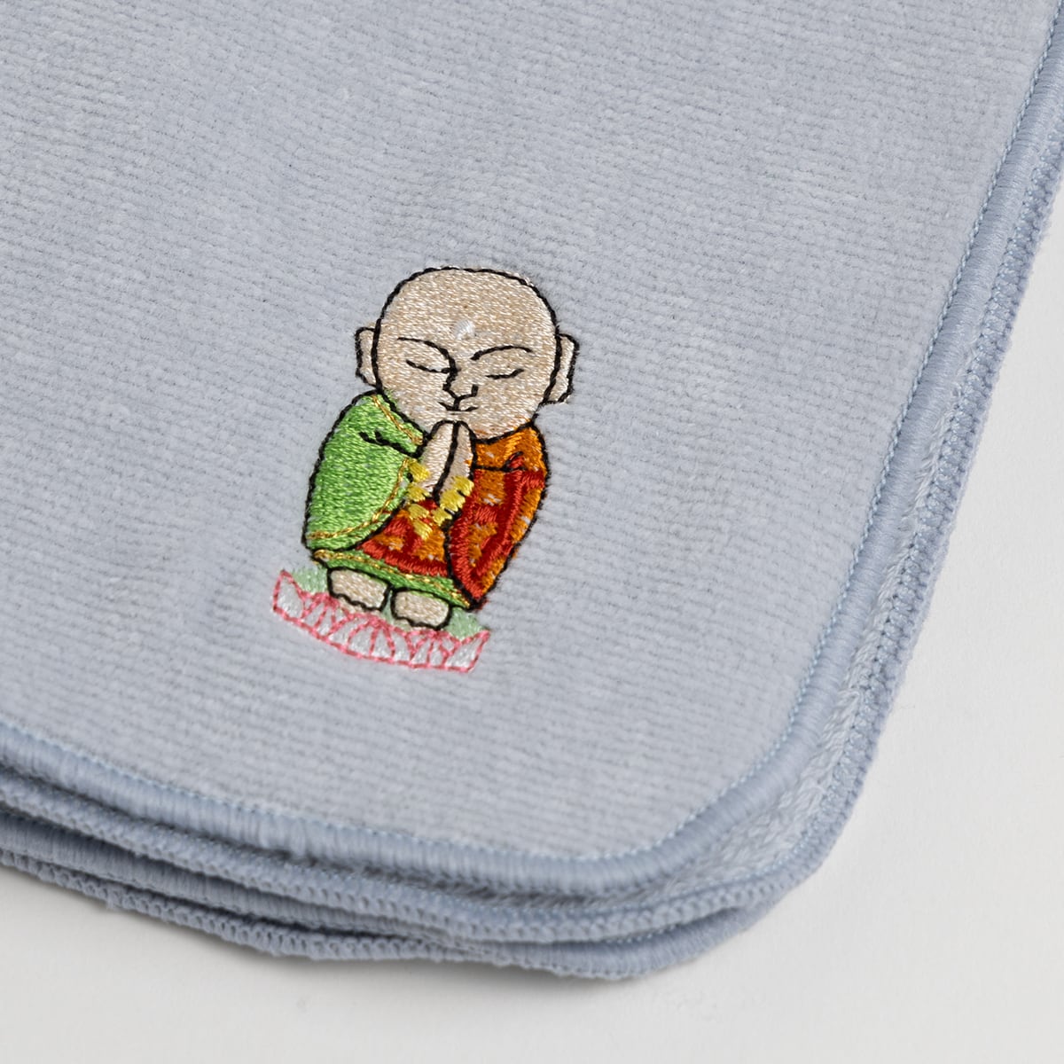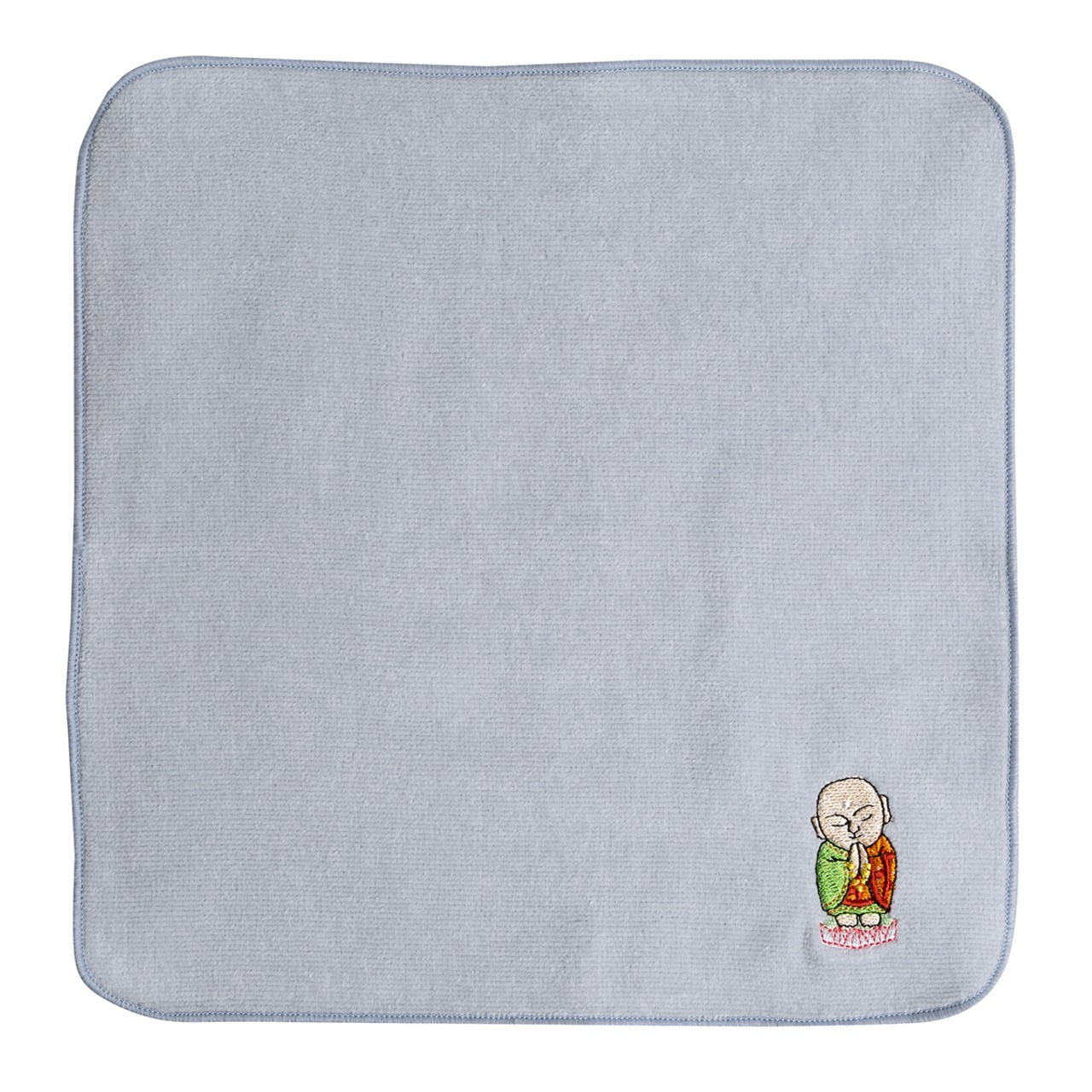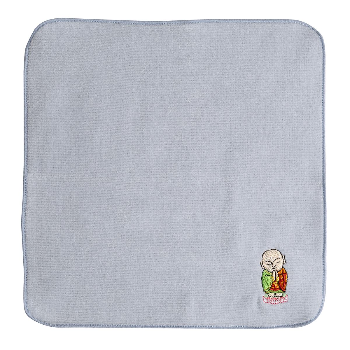 今治産のタオルハンカチに、地蔵菩薩を刺しゅうしました。 お守りがわりに持ち歩いていただけます。 サイズ: 22cm×22cm 素材: 綿100%